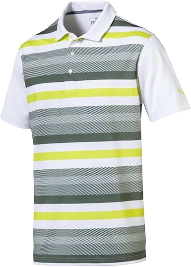 PUMA Golf Polo listrada de grama masculina, Bright White-laurel Wreath, X-Large: Amazon.com.br: Amazon Moda camisa polo puma listrada