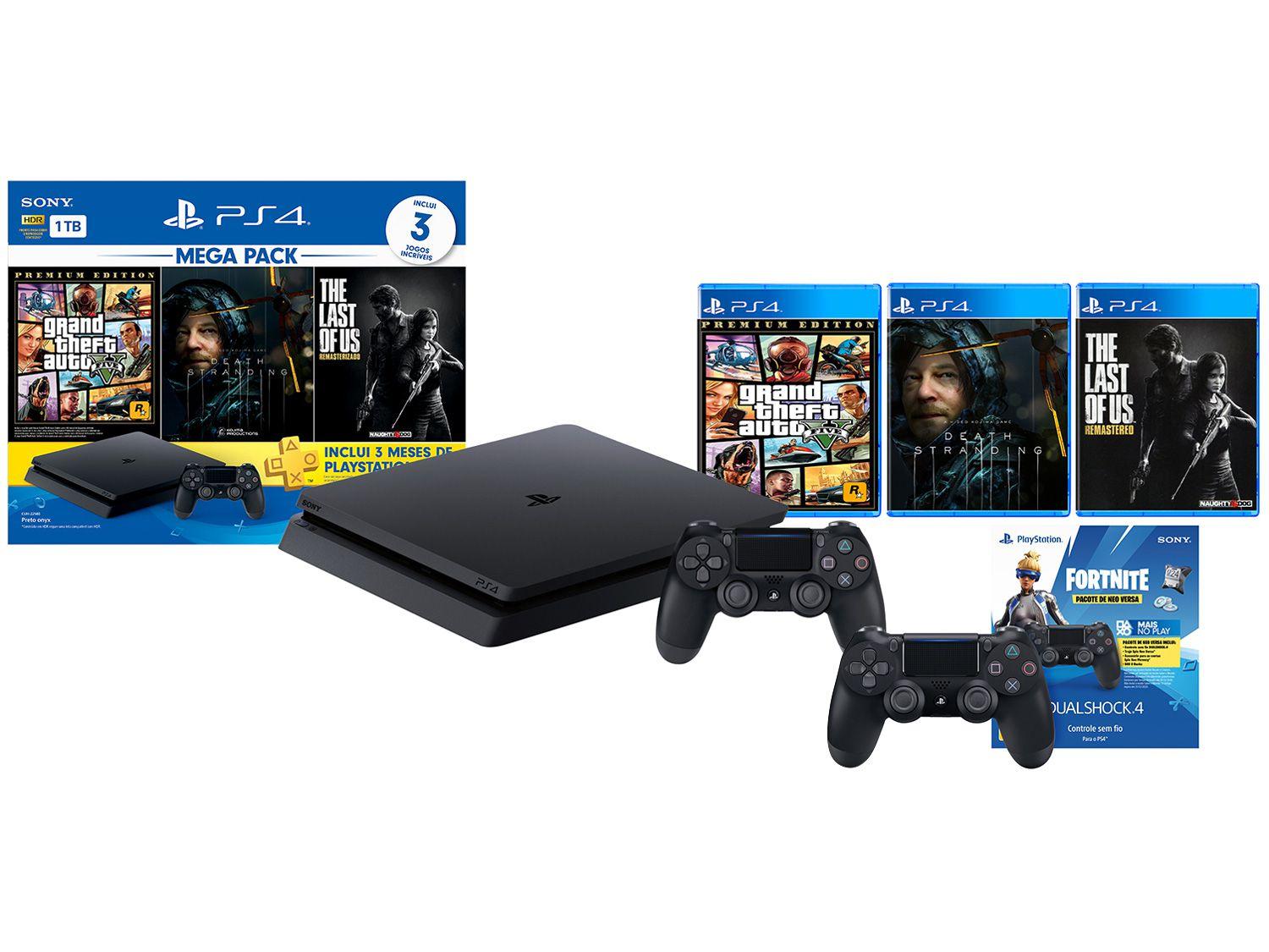 PlayStation 4 Mega Pack Bundle V9 1TB 1 Controle - Sony com 3 Jogos + Controle Sem Fio Preto - Consoles PS4 - Magazine Luiza netshoes mega pack