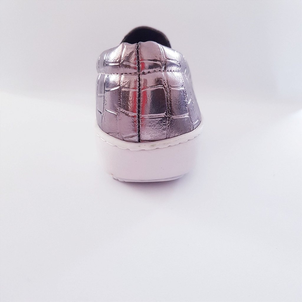 Tênis slip on croco metalizado prata velho - Carina Medeiros Shoes slip on prata velho