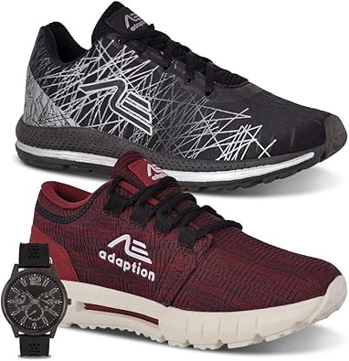 Kit 2 Tênis Masculino Adaption Ax 900 Preto/bordo+ Relogio | Adaption tenis adaption masculino