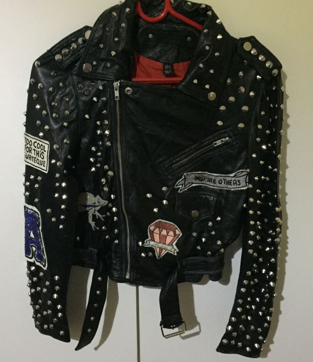 Jaqueta de Couro com Tachas e Patches Zara | Casaco Feminino Zara Usado 26226042 | enjoei jaqueta couro tachas
