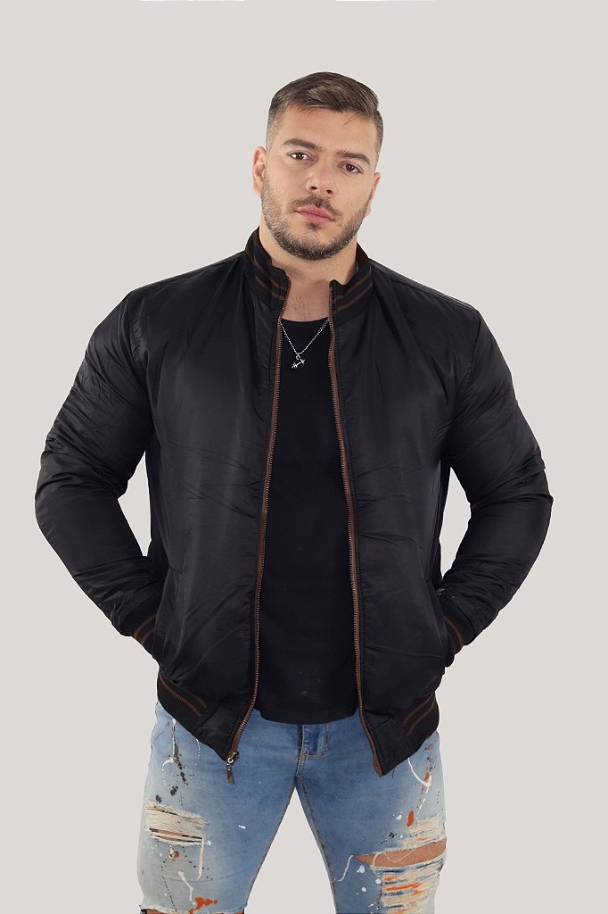 jaqueta bomber masculina dupla face - marrom/preta - DAZE MODAS jaqueta preta masculina bomber