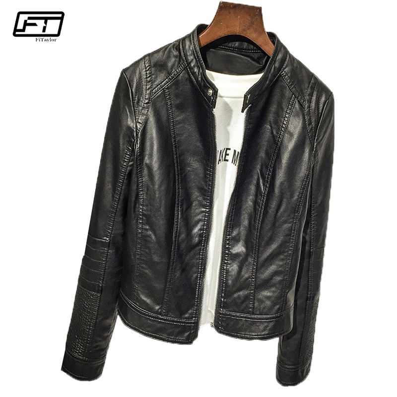 Compre Fitaylor Primavera Outono Moda Moto Motociclista Pu Faux Jaquetas De Couro Mulheres Curto Casaco Gola Mandarim Zíper Jaqueta Preta Feminino De Lbdapparel, $152,84 | Pt.Dhgate.Com jaqueta de couro gola mandarim