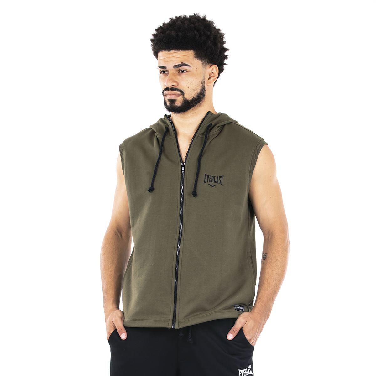 CAMISETA EVERLAST VINTAGE REGATA COM ZIPER E CAPUZ - MASCULINO - cea regata everlast masculina
