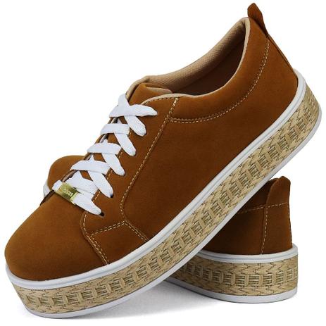 Tênis Flatform Moleca Camurça - Camel - Calce Bella - calcebella