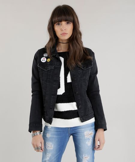 Jaqueta Jeans com Bottons Preta - cea jaqueta jeans com bottons