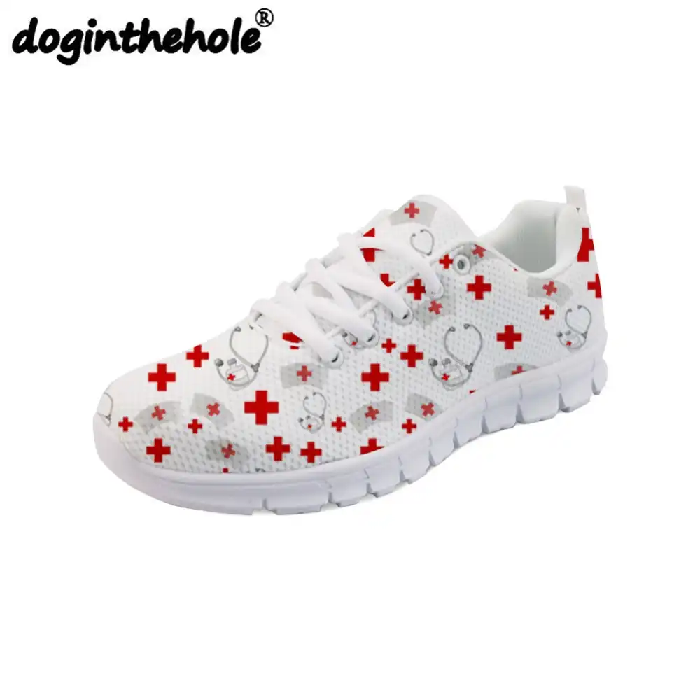 Coordenar doginthehole Enfermagem Bonito Impressão Mulheres Sapatilhas Flats Malha Tênis para Meninas Leves Ao Ar Livre Sapatos de Desporto|Tênis de corrida| - AliExpress tênis bonitos para meninas