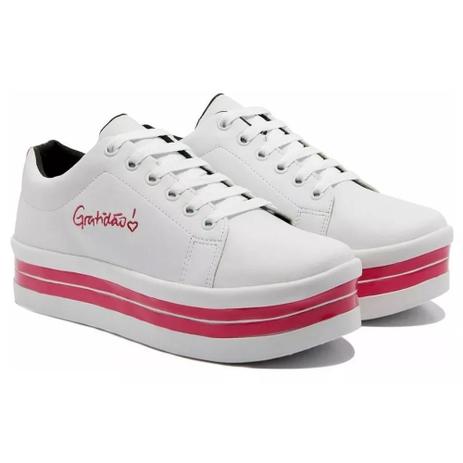 Tênis Plataforma Listrado Bordado Gratidão Salto Feminino Anabela - Gugi Calçados - Tênis Feminino - Magazine Luiza tenis com rosa bordada