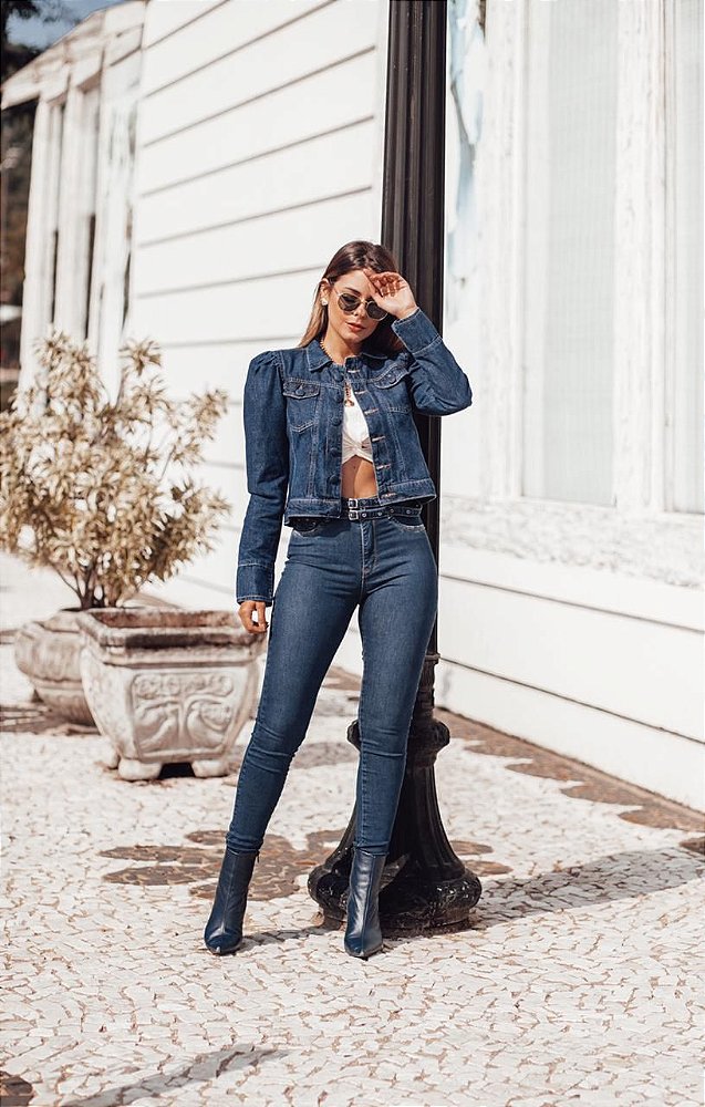 conjuntinho jeans com calça cintura alta e jaquetinha curta - LOYAL DENIM jaquetinha curta jeans