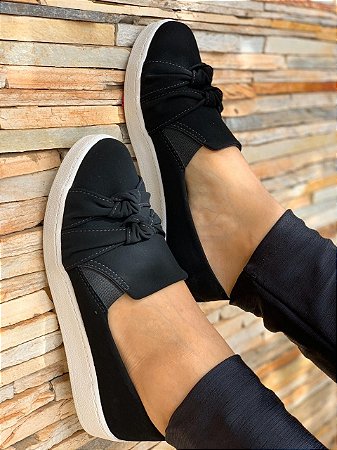Tenis casual feminino laço slip on Preto - GiselaCosta slip on preto laço