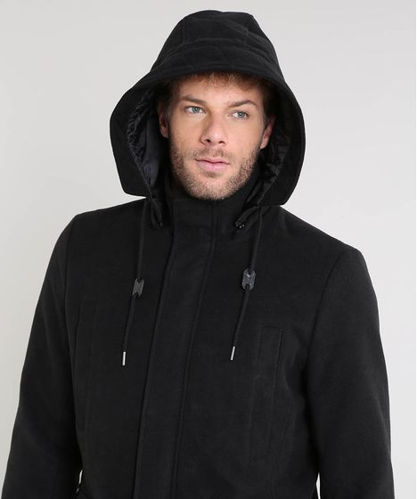 canal Ideal Ponteiro sobretudo preto masculino com capuz - tpwd.pt casaco longo masculino preto