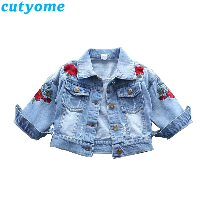 Cutyome primavera crianças jaqueta jeans para o bebê meninas moda rosa flor bordado bombardeiro blazer outono criança crianças denim casacos|children jeans jacket|jacket for baby girljeans jacket for baby - AliExpress jaqueta jeans de bebe
