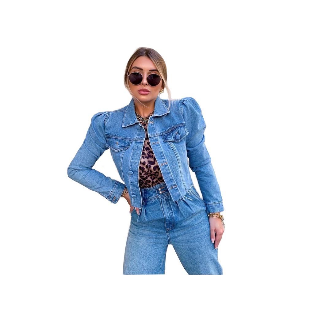 Jaqueta Jeans Feminina Barra Desfiada Manga Bufante Linda | Shopee Brasil jaqueta jeans feminina sem manga