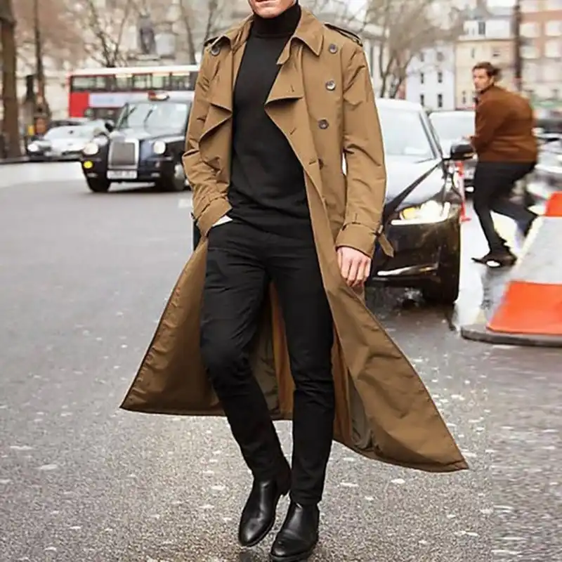 Gentleman casaco de lapela transpassado, casaco de outono inverno masculino longo com design de trincheira|Trincheira| - AliExpress casaco masculino trench coat