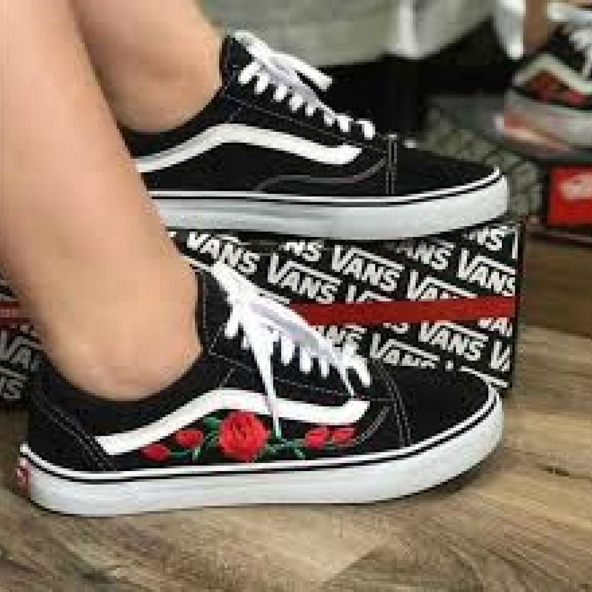 Vans Old Skool Tradicional Preto/Branco Floral Bordado Cano Baixo - Promoção. | Tênis Feminino Vans Nunca Usado 44140325 | enjoei vans bordado floral