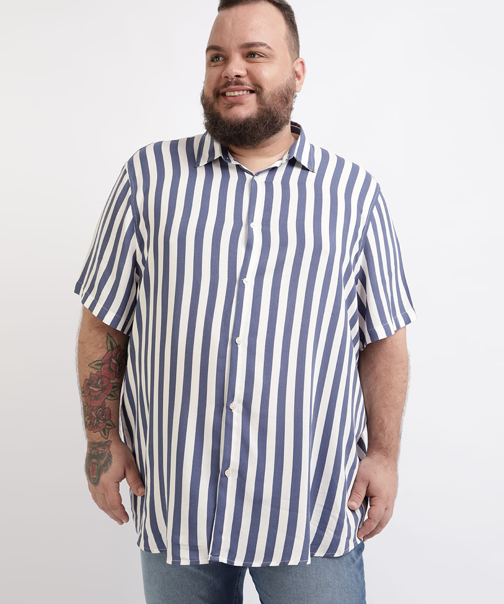 Camisa Masculina Plus Size Tradicional Estampada Listrada Manga Curta Branca - cea jaqueta listrada masculina
