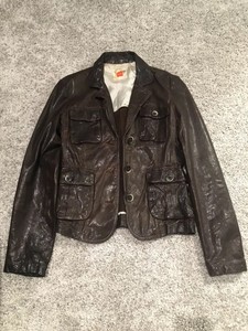 Autêntico Hugo Boss Marrom Escuro Jaqueta De Couro Feminina Tamanho Pequeno | eBay jaqueta de couro feminina marrom escuro