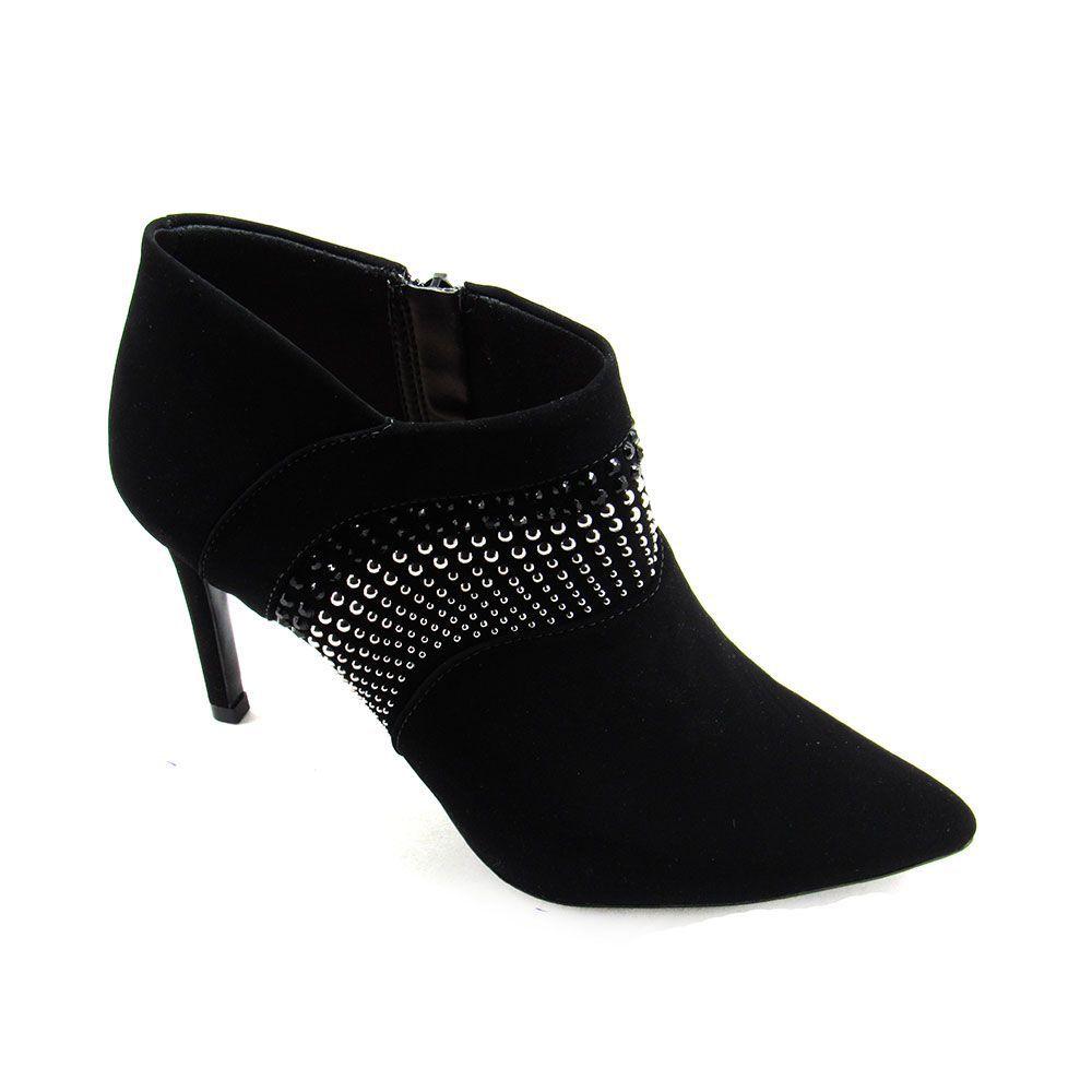 Bota Feminina Unkle Boot Cano Curto Salto Alto Camursa Preta bota salto alto cano baixo