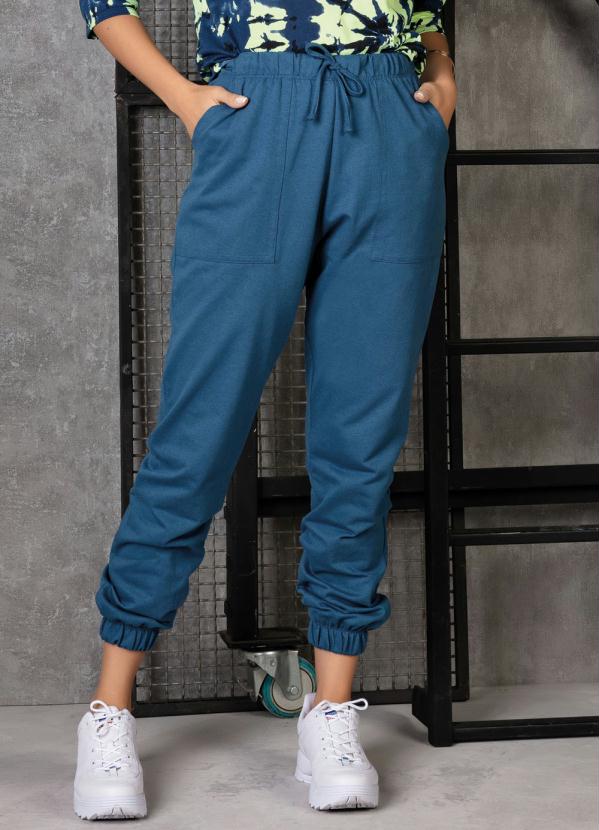 Calça de Moletinho Azul Petróleo com Bolsos - Moda Pop calça jogger moletinho feminina