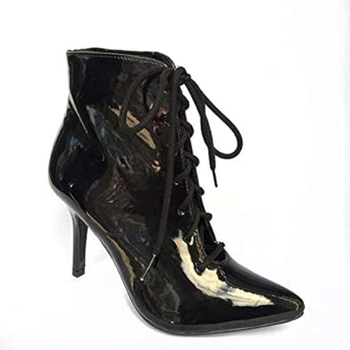 Bota Feminina Via Uno Salto Fino Cano Curto Verniz com Cadarço | Amazon.com.br bota salto com cadarço