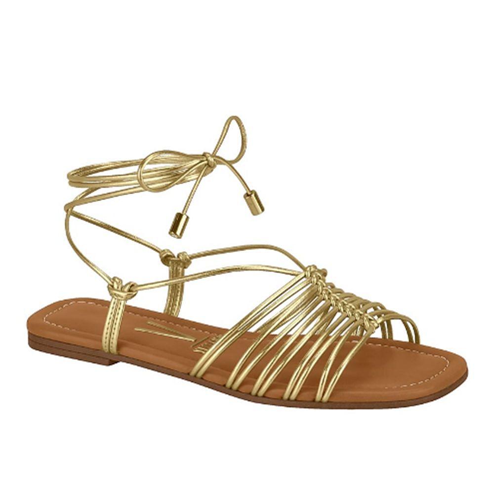 Sandália rasteira de amarração dourada sandalias douradas rasteiras