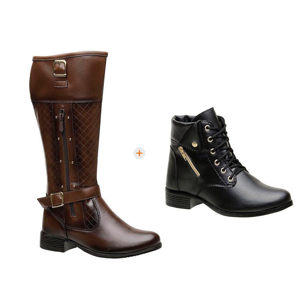 Kit 2 pares de bota coturno e bota montaria marrom com ziper lateral - Slin - Bota Feminina - Magazine Luiza bota coturno mooncity napa marrom