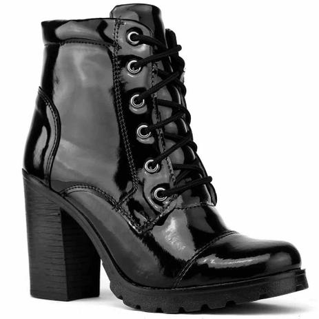 Bota Ferrarelo Coturno Verniz Salto Tratora Feminina - Preto botinha preta de verniz