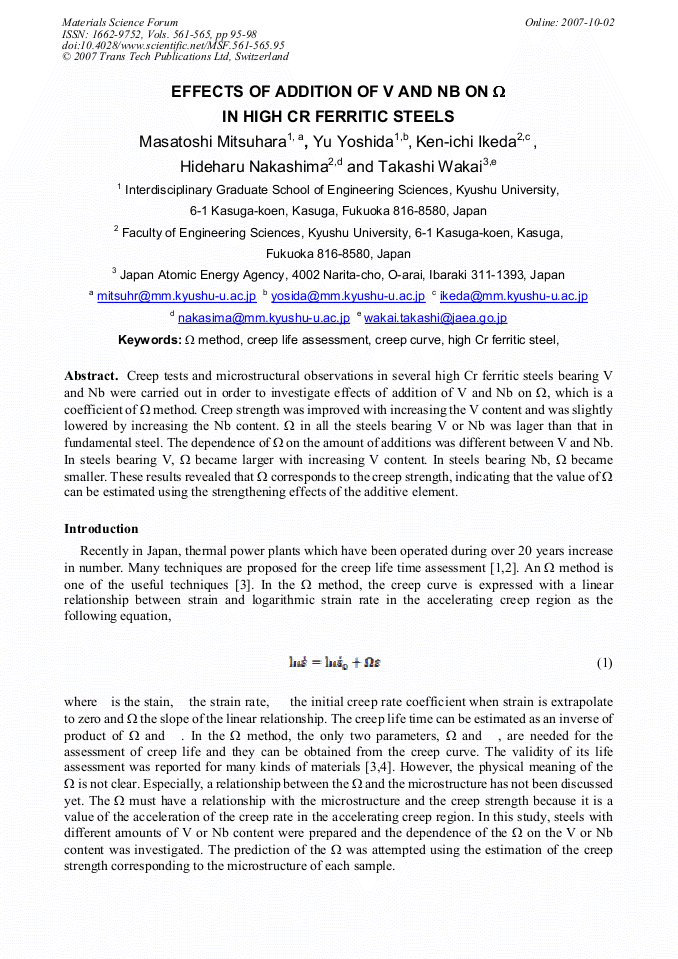 Effects of Addition of V and Nb on Ω in High Cr Ferritic Steels | Scientific.Net 565 nb