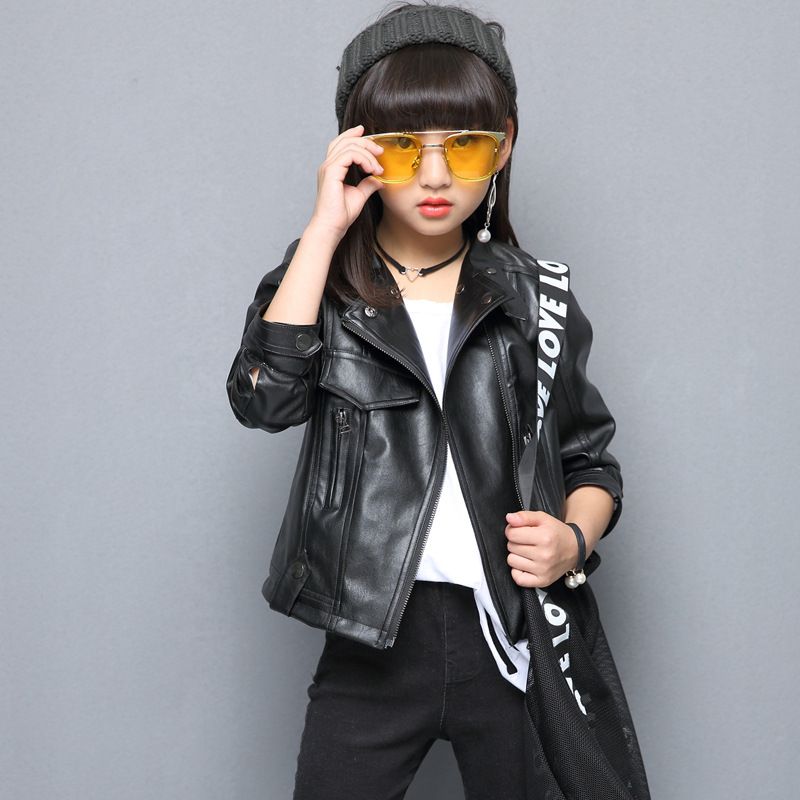 Weoneit Nova Jaqueta De Couro Menina Crianças Casacos de Meninas Primavera Crianças Crianças Outerwear Jaquetas De Couro Falso Meninas Casual Sólido Preto|children outerwear|leather jacket girlsgirls leather jacket - AliExpress jaqueta de couro menina
