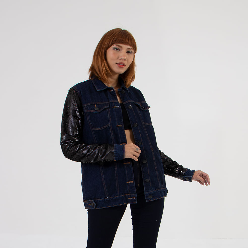 Jaqueta Maxi Lady Rock Manga de Paetê Lavagem Escura - ladyrock maxi jaqueta lady rock