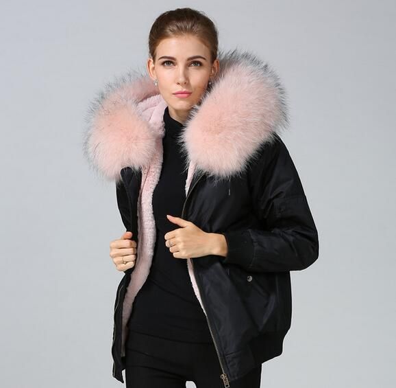 Compre Nylon Casacos Rosa Guarnição De Pele De Guaxinim Meifeng Mulheres Marca Neve Casacos De Pele De Coelho Rosa Alinhada Preto Parka Bomber Nylon Para O Tempo Frio De Inverno De Qltrade_13, casaco de frio nylon
