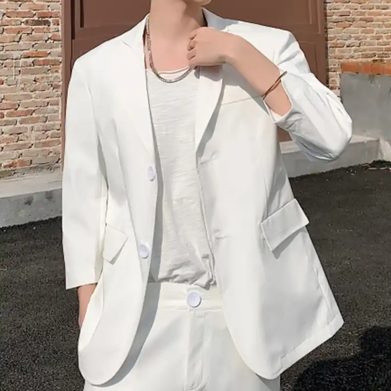 Blazer hombre branco design decorativo sete manga terno homem streetwear japão coreia estilo terno blazer casaco calças apenas jaqueta|Blazers| - AliExpress casaco branco homem