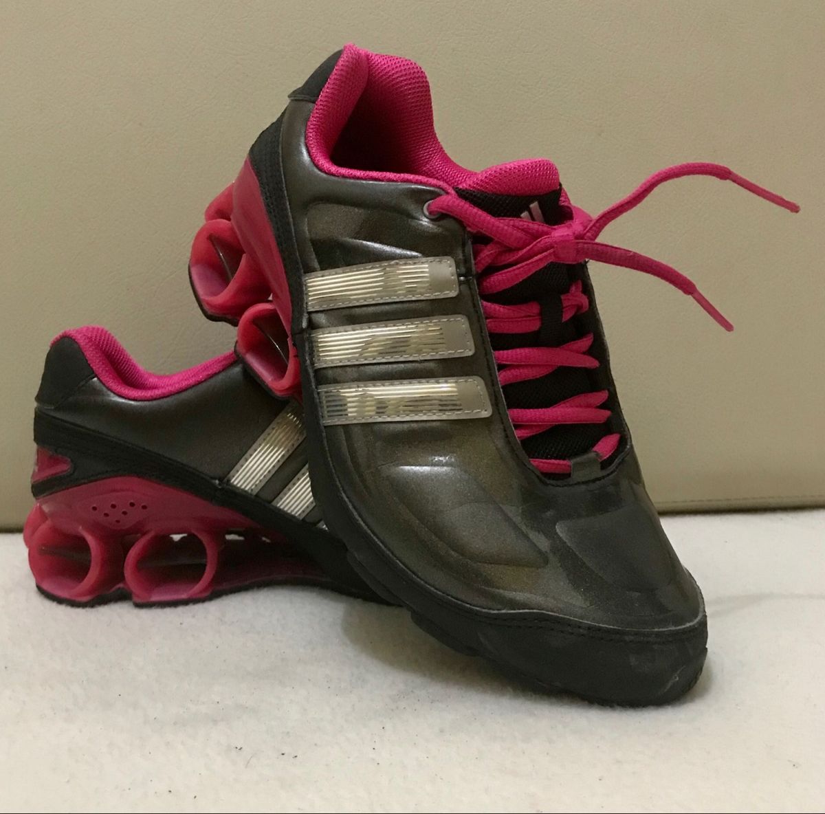 Tênis Adidas - Cinza, Prata e Pink | Tênis Feminino Adidas Usado 40745618 | enjoei tenis adidas cinza escuro