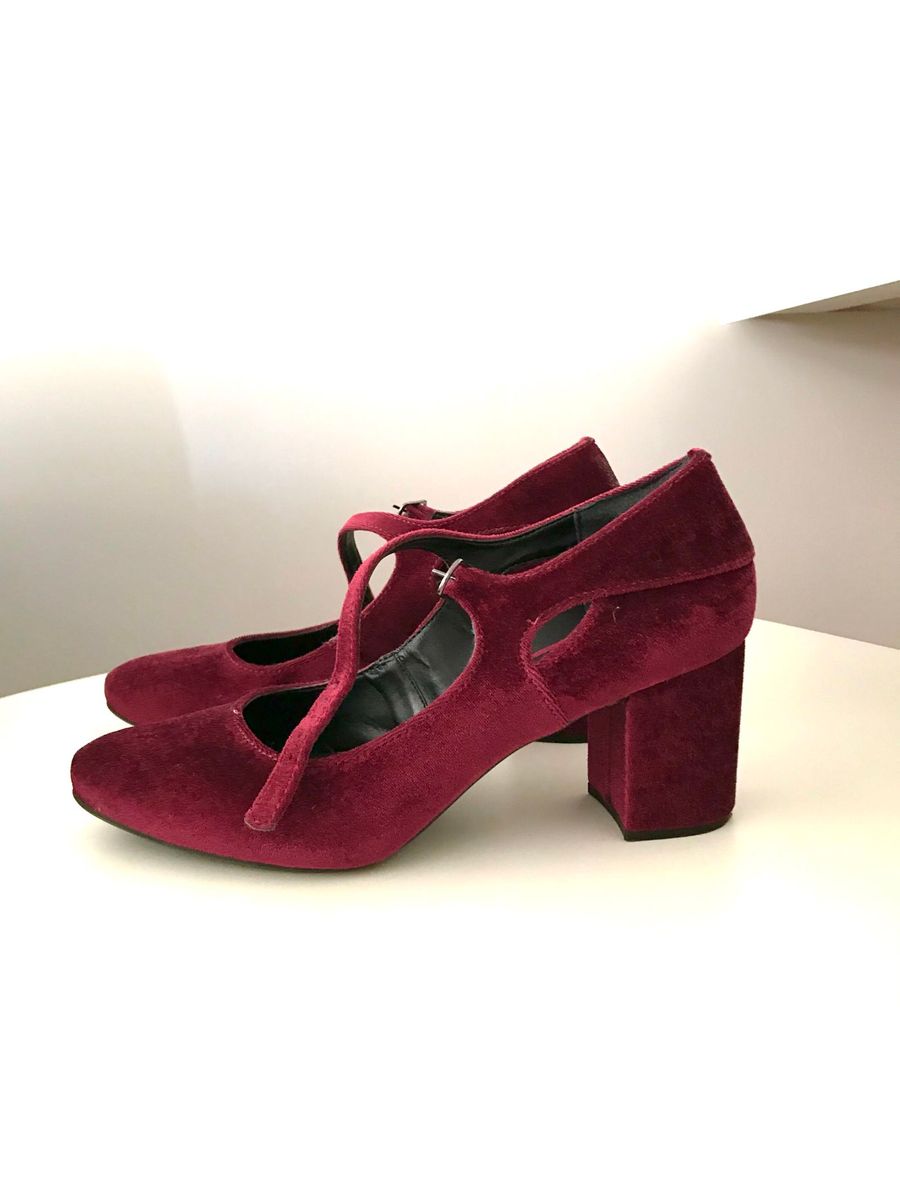 Sapato Estilo Boneca de Veludo Salto Grosso | Sapato Feminino Mundial Calçados Usado 30906256 | enjoei salto estilo boneca