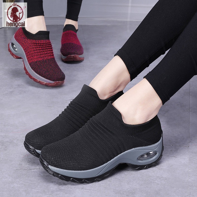 As mulheres deslizam em malha sapatos de caminhada almofada de ar confortável plataforma tênis de trabalho | Shopee Brasil tênis confortável para fazer caminhada