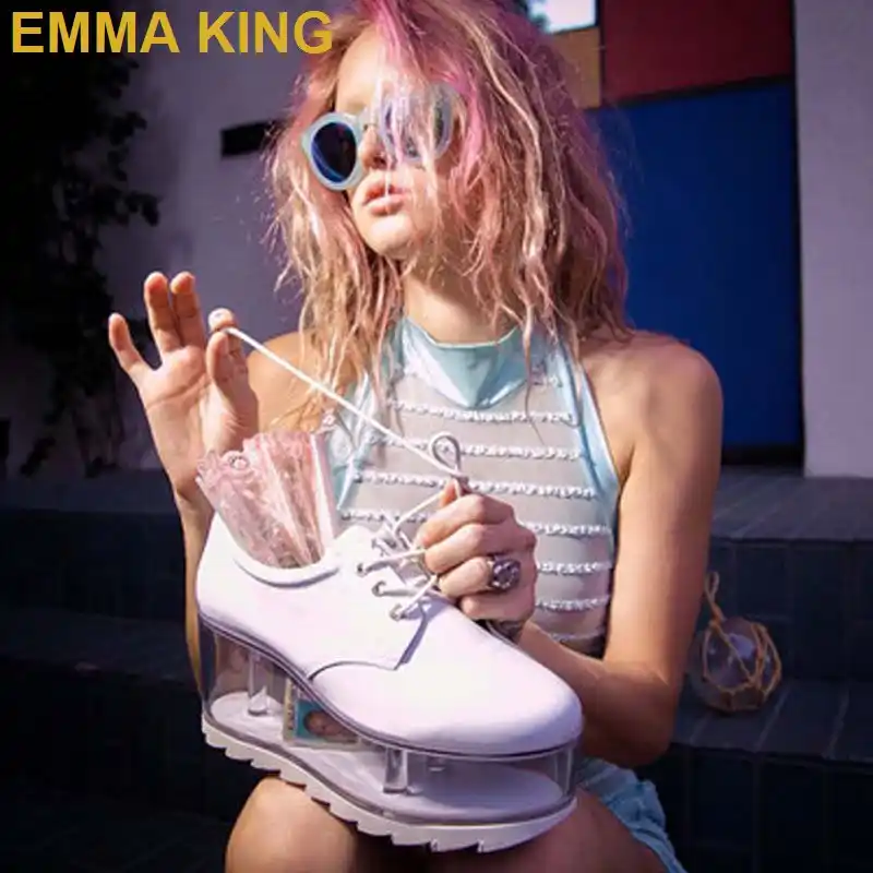 EMMA REI Tênis Plataforma Inferior Mulheres Flats Senhoras Transparente Recipiente Transparente Designer de Sapatos Dedo Do Pé Redondo Mulheres Lace Up Loafers|Sap. Vulcaniz. Fem.| - AliExpress tenis plataforma transparente