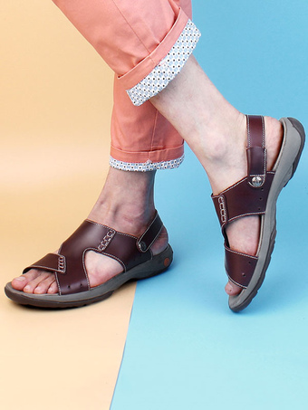 Sandália Masculina Verão Couro Marrom Homens