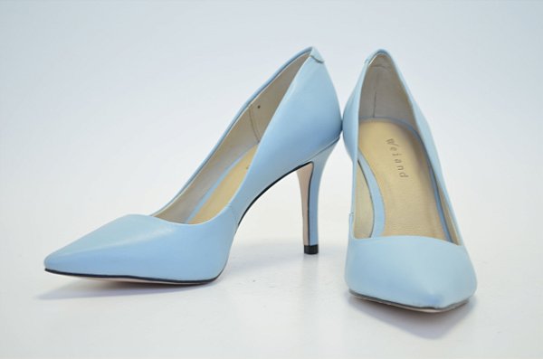 Scarpin em couro azul claro salto fino alto - Weiand Calçados salto alto azul claro
