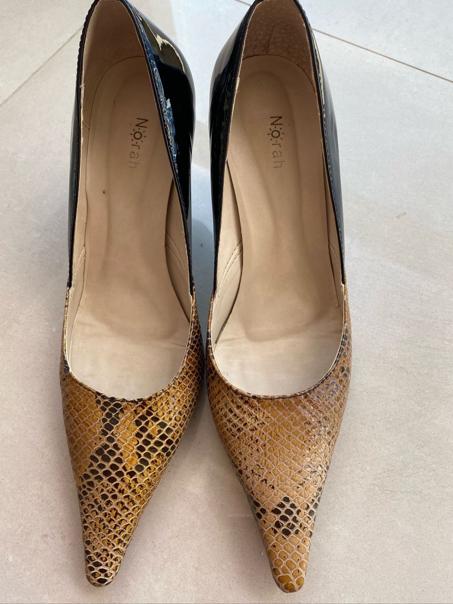 Sapato Fino de Verniz Preto e Cobra | Sapato Feminino Norah Usado 47947997 | enjoei sapatos norah