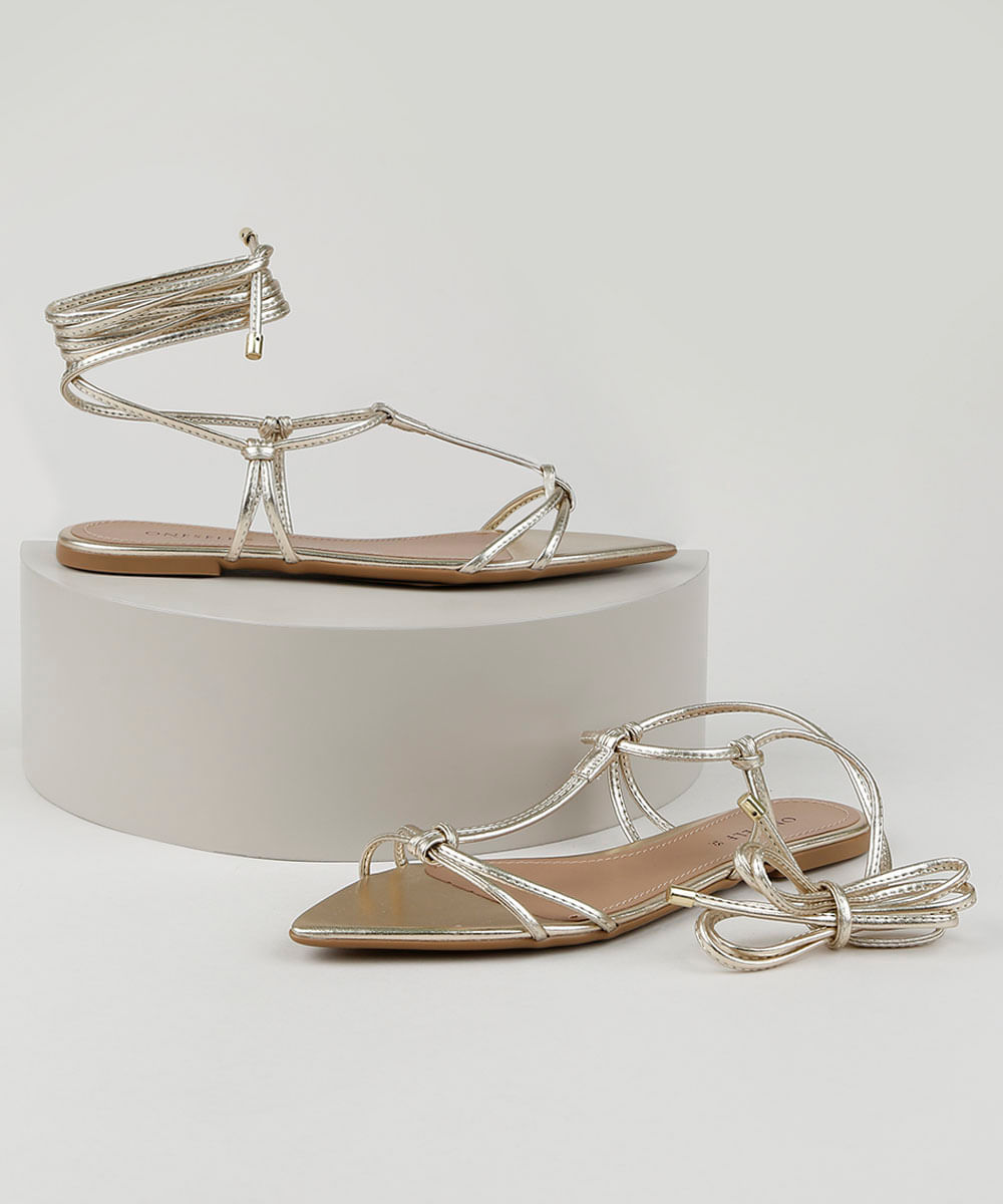 Rasteirinha Feminino Oneself com Tira para Amarrar Dourado - cea rasteirinha parô