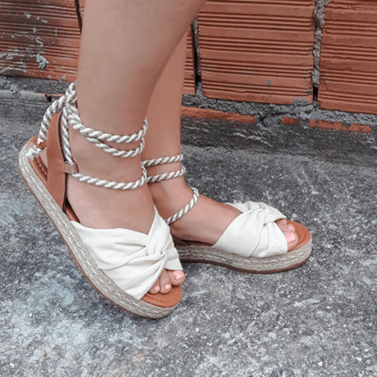 Rasteirinha Flatform Fashion Cordas Bege | Rasteira Feminina Belle Calçados Nunca Usado 35119628 | enjoei rasteira flatform corda