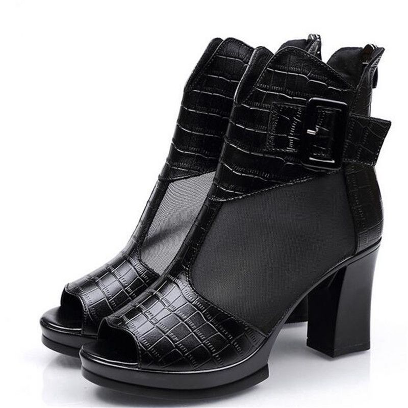Compre Promoção Couro Malha Calçados Femininos Summer Fashion Sandals Tornozelo Botas 2020 Saltos Altos Peixe Boca Verão Sandálias De Couro Sapatos Mulheres Sandálias De Xiaozi2018, $152,45 | Pt.Dhgate.Com calcados femininos promocao