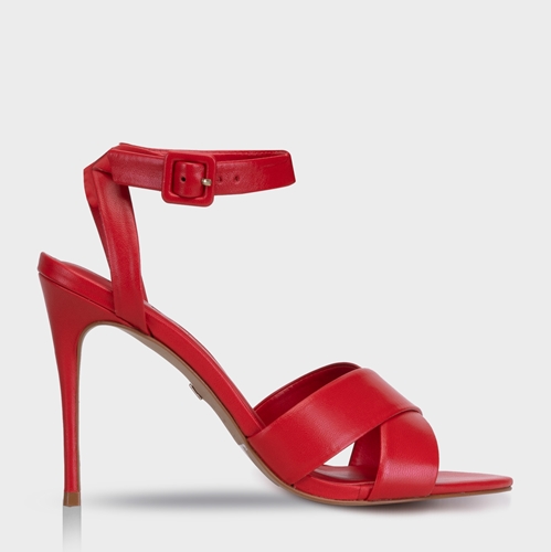 Sandália Bico Folha Couro Vermelho Carrano sandalias carrano