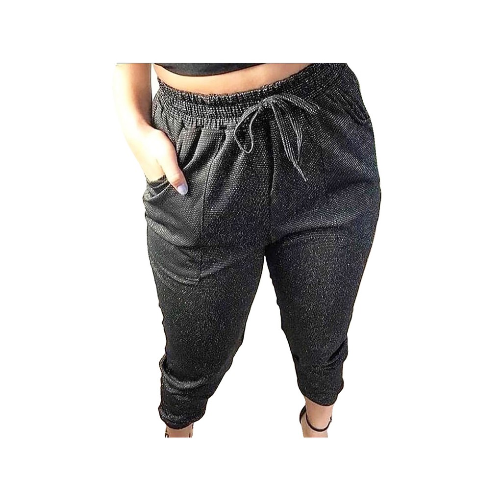 Calça Jogger Pantacourt Feminino Social Moda Lurex De Brilho | Shopee Brasil calça jogger feminina brilhosa