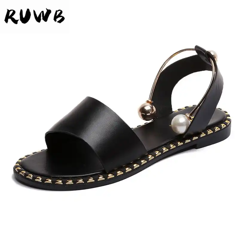 Ruwb novas meninas de rua moda sandálias femininas couro macio confortável plana sandalias mãe pérola dedo do pé aberto plataforma sapatos verão|sandálias femininas| - AliExpress sandalias femininas da moda
