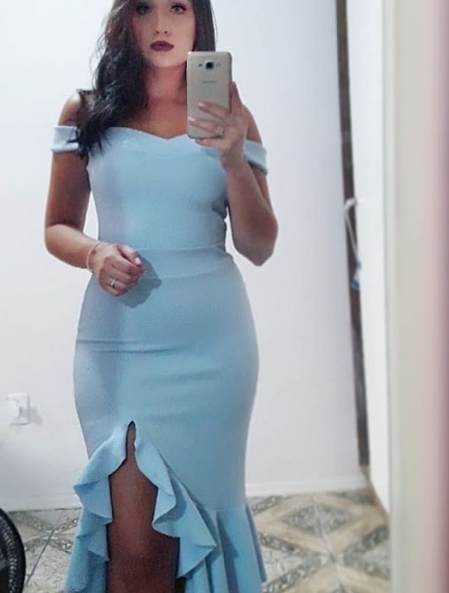 Vestido Midi Ombro a Ombro com Fenda | Vestido de Festa Feminino Usado 34168512 | enjoei vestido midi ombro a ombro