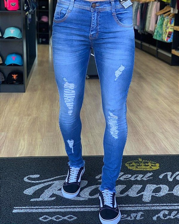Calça Masculina Destroyed Jeans Claro | Ideal Vest Rouparia - Ideal Vest Rouparia - Loja de Roupas Masculinas Multimarcas calças degrant masculina