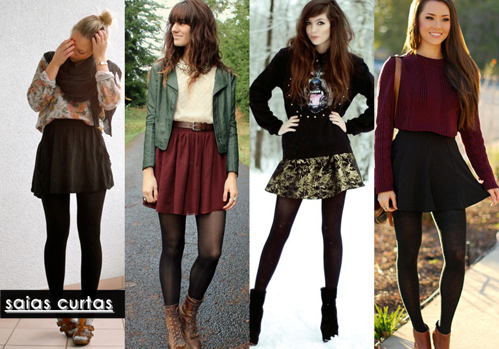 COMO USAR – MEIA CALÇA PRETA saia com bota e meia calça