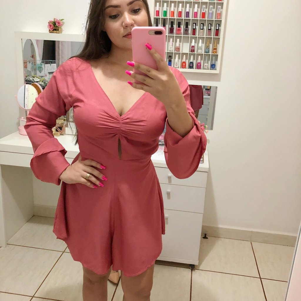Macacão Macaquinho rosa de nó Lastex viscose alça regulável - Caramell Modas \u0026 Acessórios macaquinho rosa