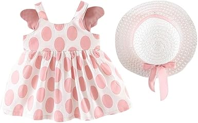 BAOBAOLAI 2 peças de roupas para bebês meninas, estampa de bolinhas, vestido sem mangas, alças com design de asas + chapéu de sol | Amazon.com.br roupas com estampas de bolas